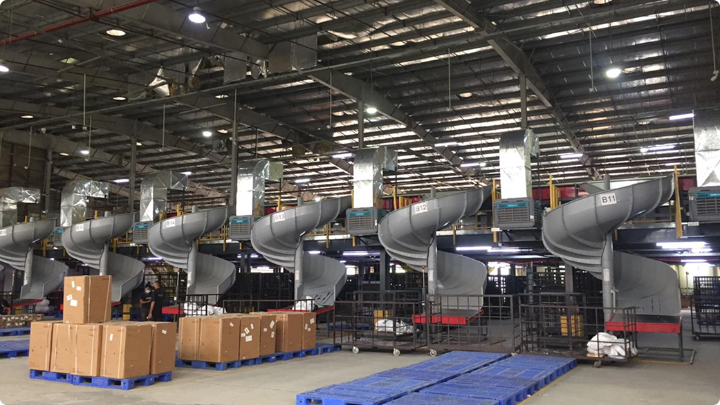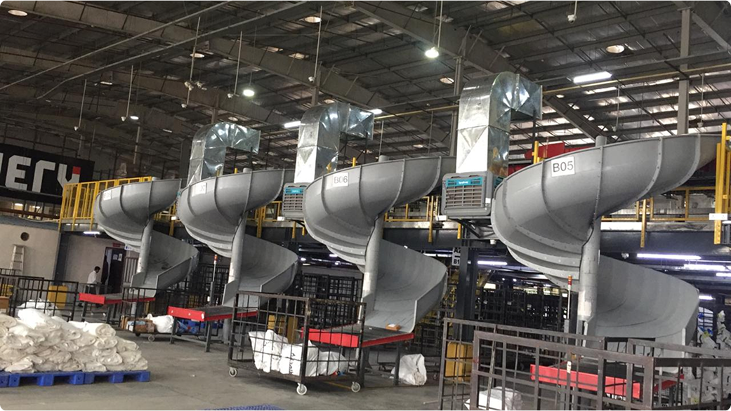 The scale of the facility — 80,000 sq. ft. of continuous floor space — required a system that could deliver uniform cooling without gaps in coverage, and that could be installed without causing extended disruption to the centre’s sorting operations.