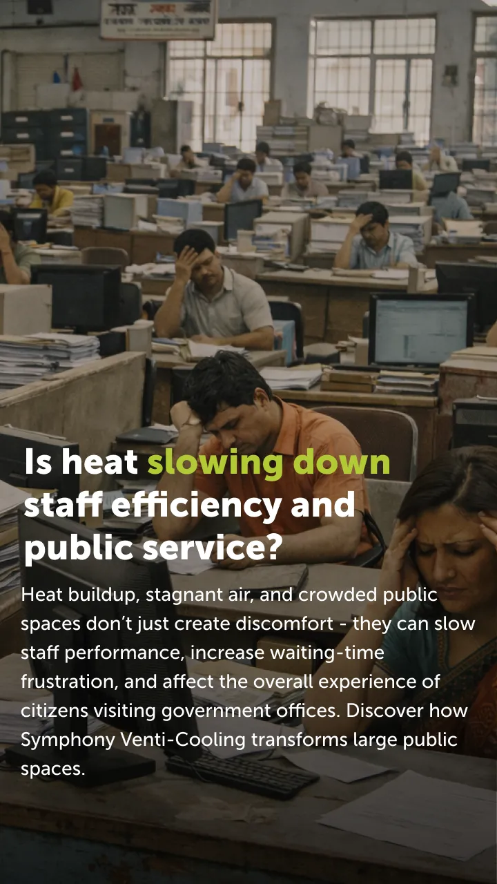 Providing a safe, breathable environment in high-traffic government buildings is no longer optional; it's a standard. Symphony’s Venti-Cooling technology addresses the specific challenges of large-volume spaces where traditional AC is unfeasible. By ensuring 100% fresh air displacement, we are not just cooling spaces; we are improving the quality of public service delivery across the nation.